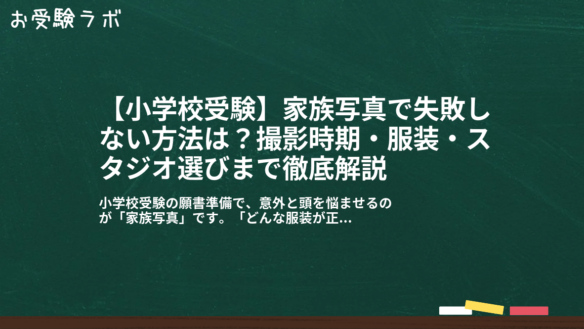 本記事では、15年の小学受験指導経験と実際の保護者の体験談をもとに、合格に一歩近づくための家族写真のポイントをすべて解説します。