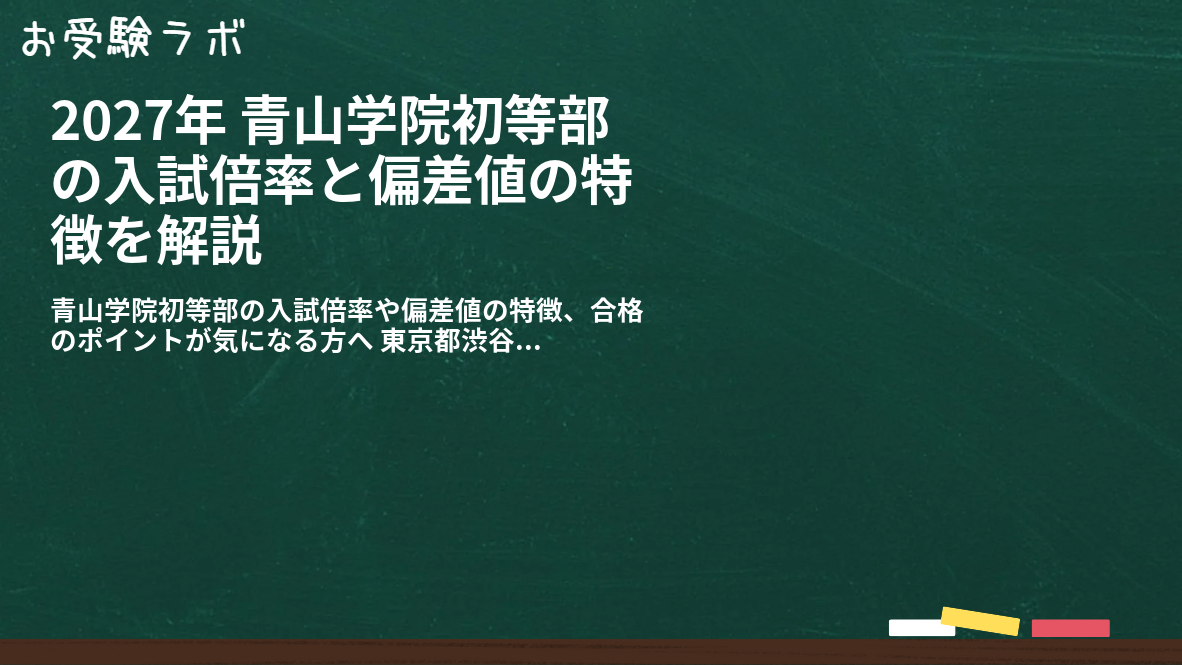 この記事でわかること:青山学院初等部の倍率推移、偏差値の意味、合否を分ける要素、2027年入試に向けた具体的な対策