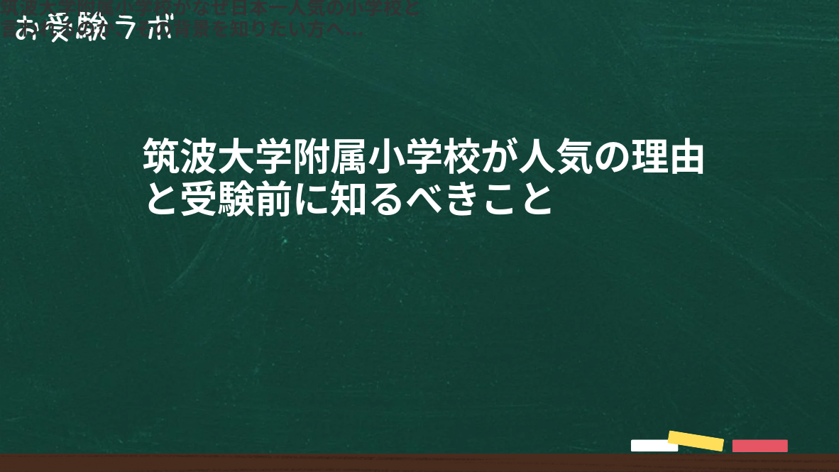 この記事でわかること:筑波小の魅力、入試の特徴、親が準備すべきポイントが理解できます。