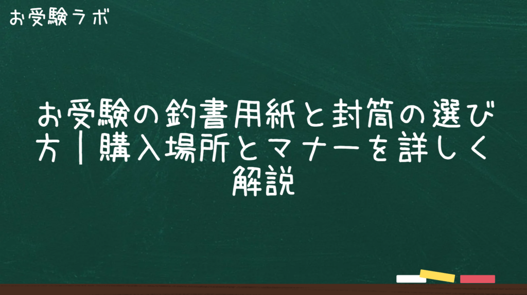 お受験ラボ編集部です。お子さんの小学校受験にあたり、釣書の用紙や封筒選びで悩んでいませんか?釣書は親の品格や常識を示す重要な書類ですから、適切な用紙や封筒を選び、正しいマナーで作成することが大切です。この記事では、釣書にふさわしい便箋と... -