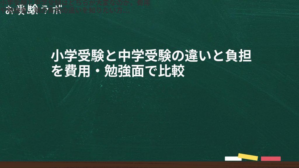 小学受験と中学受験はどちらが大変なのか、費用や勉強量、親の負担の違いを知りたい方へ 小学受験と中学受験はどちらも大変な受験ですが、その大変さの種類や負担のかかり方には違いがあります。 この記事では、それぞれの特徴を整理し、ご家庭に合った選... -